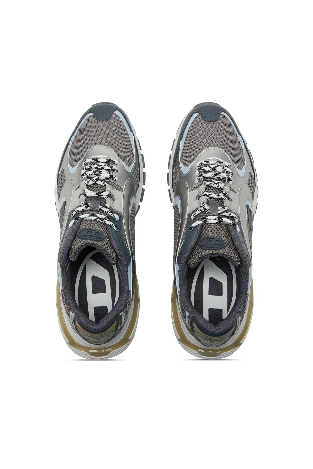 סניקרס ריצה בצבע אפור/כחול, בעיצוב דינמי המשלב בדים טכניים ועור איכותי, עליונית רשת עם פרטי עור מטאלי ולוגו די אובאלית איקוני, סוליה מוצקה לאחיזה מיטבית ולביצועים גבוהים