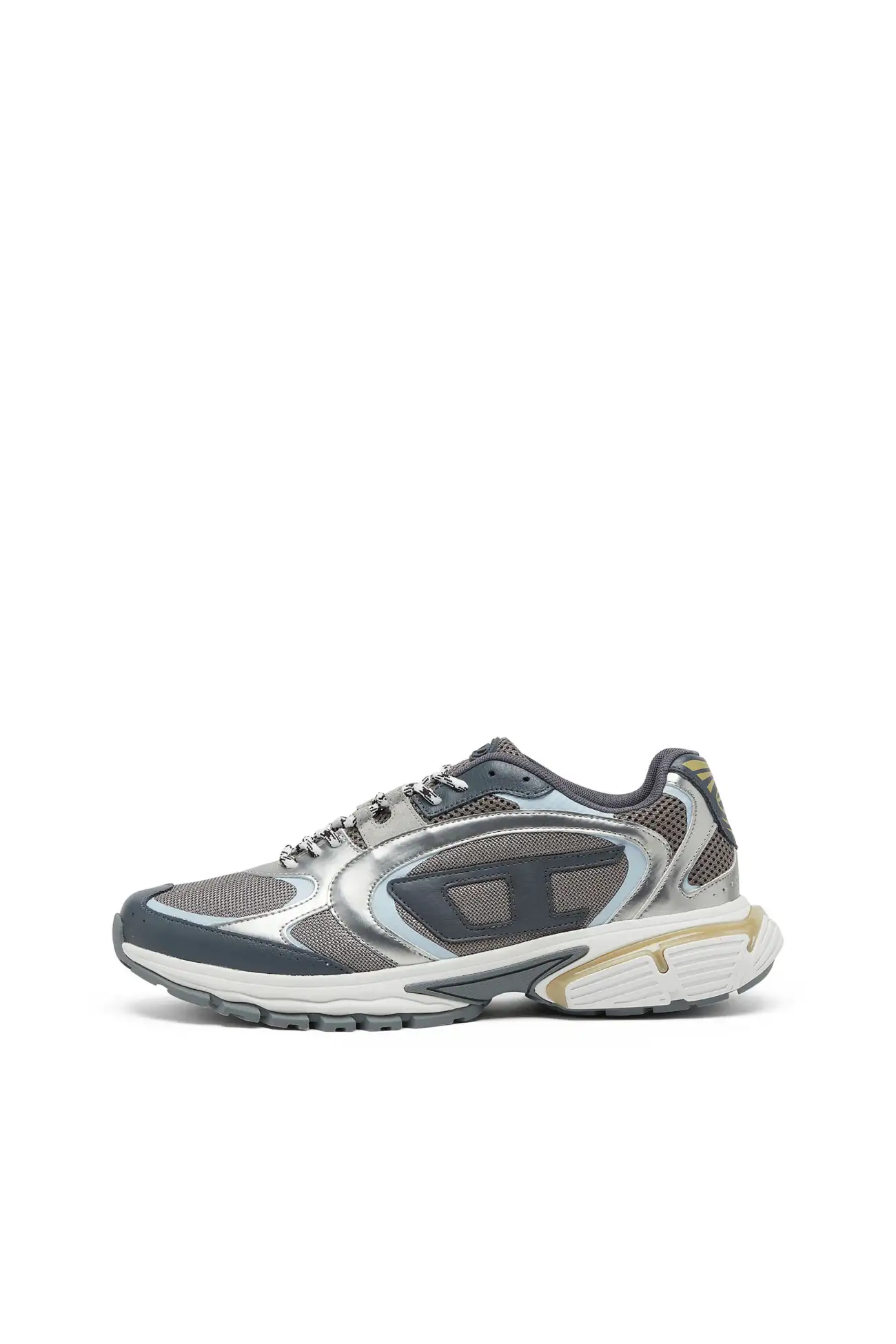Running sneakers with a dynamic design that blends technical fabrics and quality leather. The upper construction includes mesh and metallic leather details, enriched by an iconic Oval D motif. The solid sole offers optimal performance thanks to its robust structure and non-slip grip. A perfect combination of bold style and technical features for high performance.