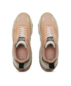 סניקרס נשים בצבע ורוד/לבן, שילוב רשת ובדים טכניים לנידוף ואוורור, לוגו די בולט בפאנל הצדדי וכיתוב לוגו על הלשון, סוליית גומי עבה וניגודית להשלמת מראה מאסיבי
