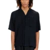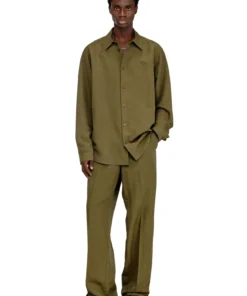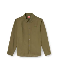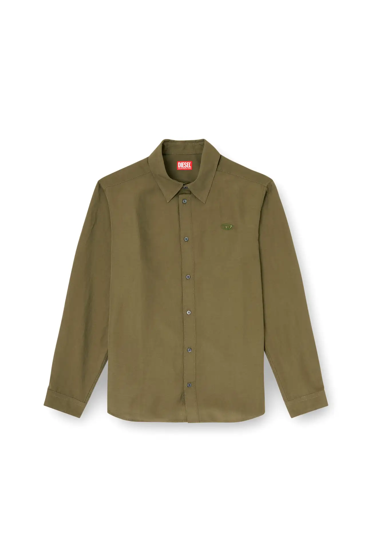 Men's regular-fit shirt crafted from a light, breathable blend of modal, responsibly-sourced viscose and linen, garment dyed for a softly faded finish. The style features long sleeves with buttoned cuffs, a four-hole button front closure, and a tonal embroidered Oval D logo on the chest for a subtle Diesel signature.