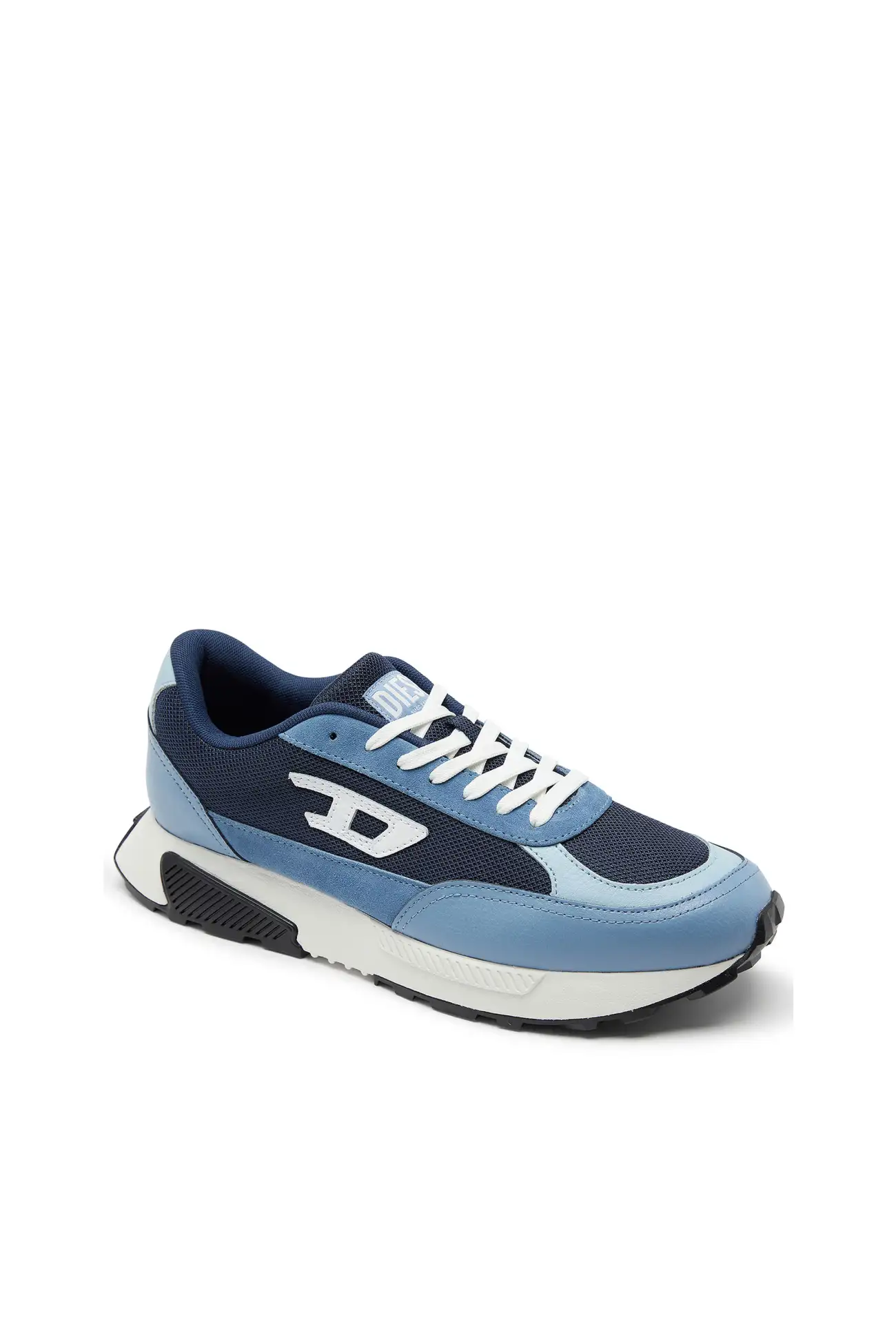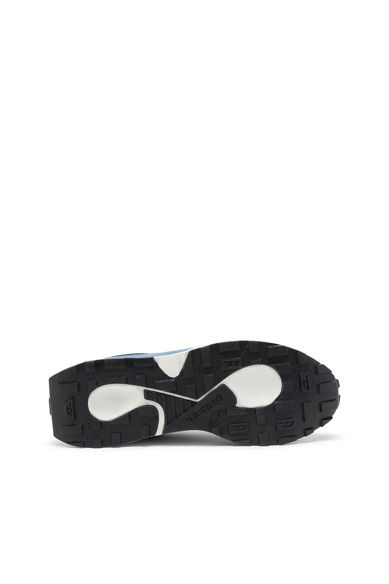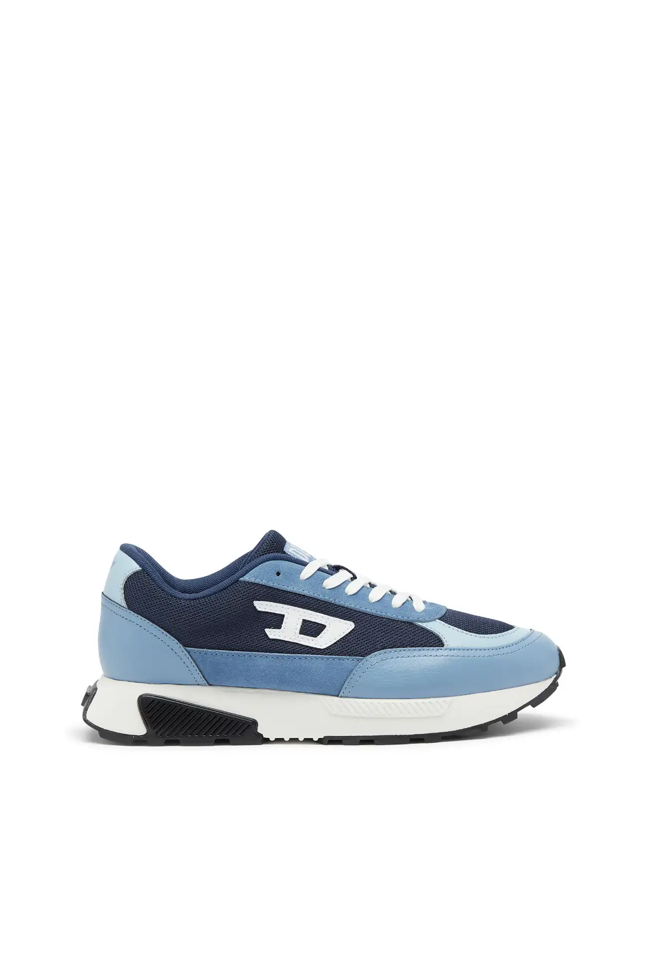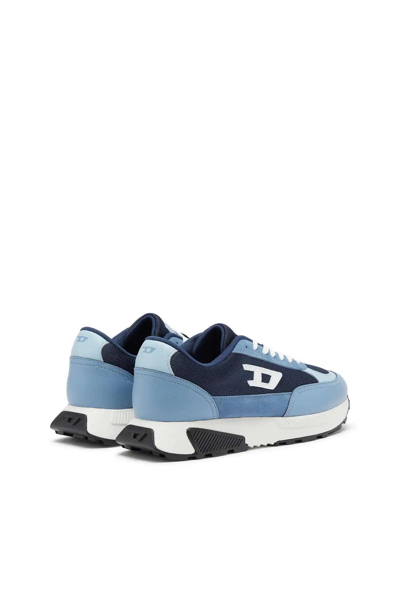 Mens low top sneakers combining suede, leather and mesh. The upper is enriched by a bold D logo in leather on the side and a Diesel Biscotto logo on the mesh tongue. The heel tab features D logo branding. A rubber and EVA outsole completes the design. Contrasting tones add a fresh touch.