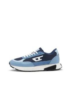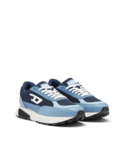 סניקרס נמוכות בעיצוב ספורטיבי המשלבות זמש, עור ורשת. החלק העליון מודגש בלוגו D מעור בצד ולוגו Diesel Biscotto על לשון הרשת, עם מיתוג נוסף בלשונית העקב. שילוב הגוונים המנוגדים מעניק לדגם מראה רענן, בעוד סוליית גומי ו-EVA משלימה את המבנה הקל ומספקת נוחות יומיומית