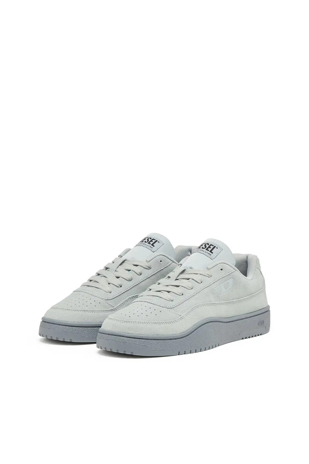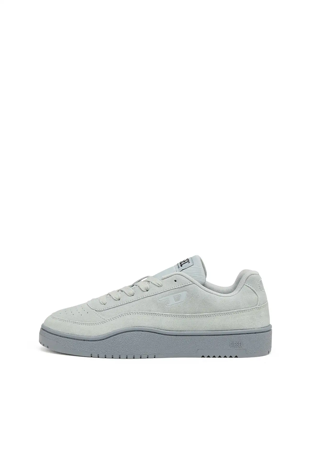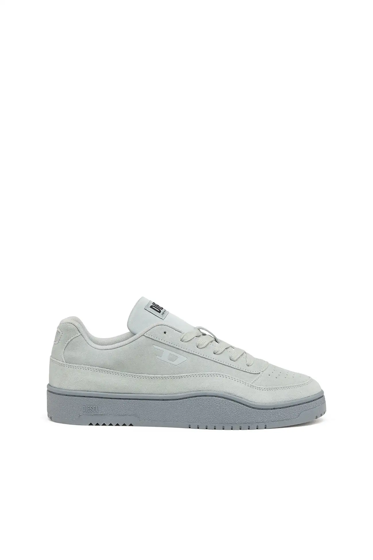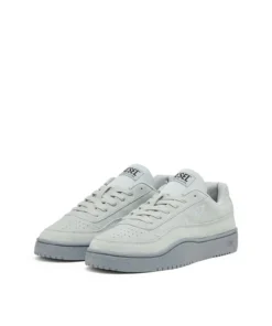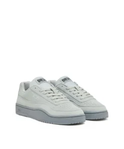 These low-top sneakers reinterpret classic court footwear through Diesel’s contemporary design language. The upper is crafted from soft suede with perforated detailing on the toe and a tonal D logo on the side panel. A padded tongue with a Diesel logo patch and matching laces reinforce the sporty structure, while the light-toned rubber sole features an embossed Diesel logo along the side. The result is a clean everyday sneaker that balances comfort with a distinctive Diesel attitude.