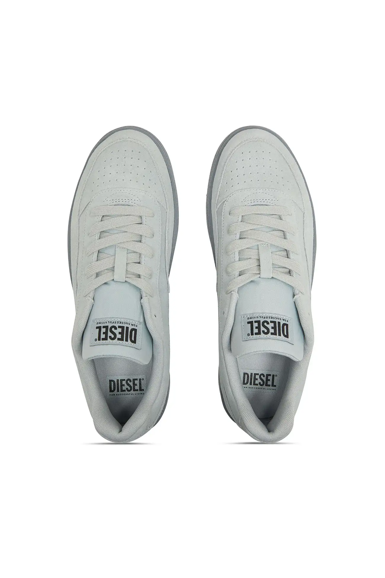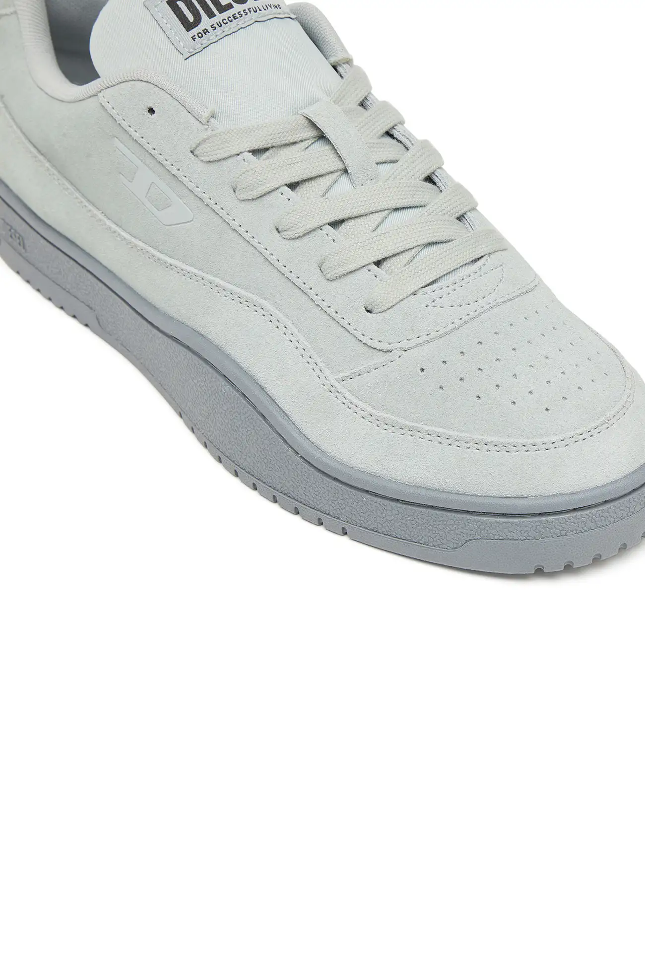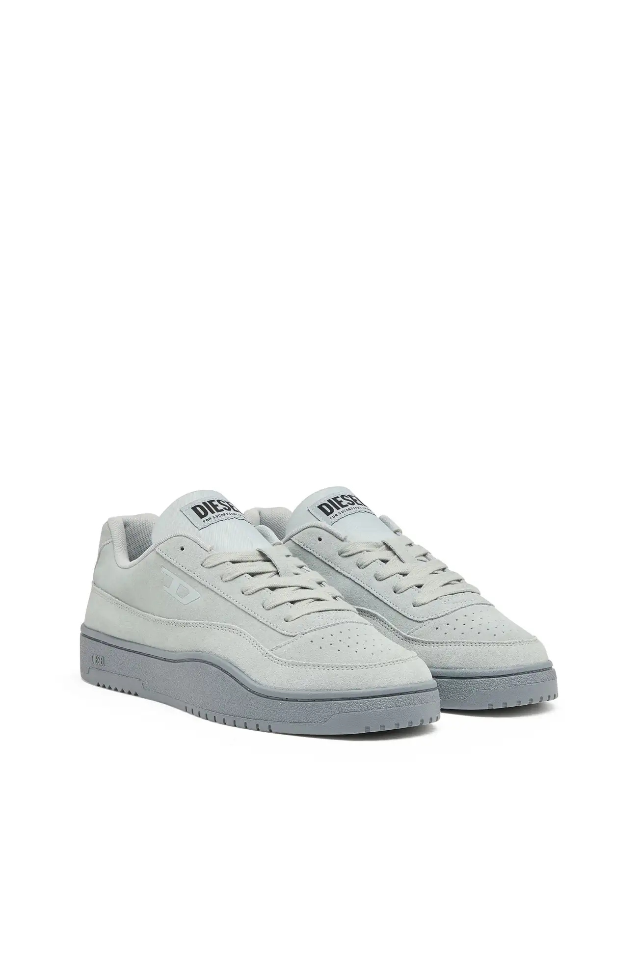 These low-top sneakers reinterpret classic court footwear through Diesel’s contemporary design language. The upper is crafted from soft suede with perforated detailing on the toe and a tonal D logo on the side panel. A padded tongue with a Diesel logo patch and matching laces reinforce the sporty structure, while the light-toned rubber sole features an embossed Diesel logo along the side. The result is a clean everyday sneaker that balances comfort with a distinctive Diesel attitude.