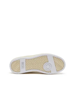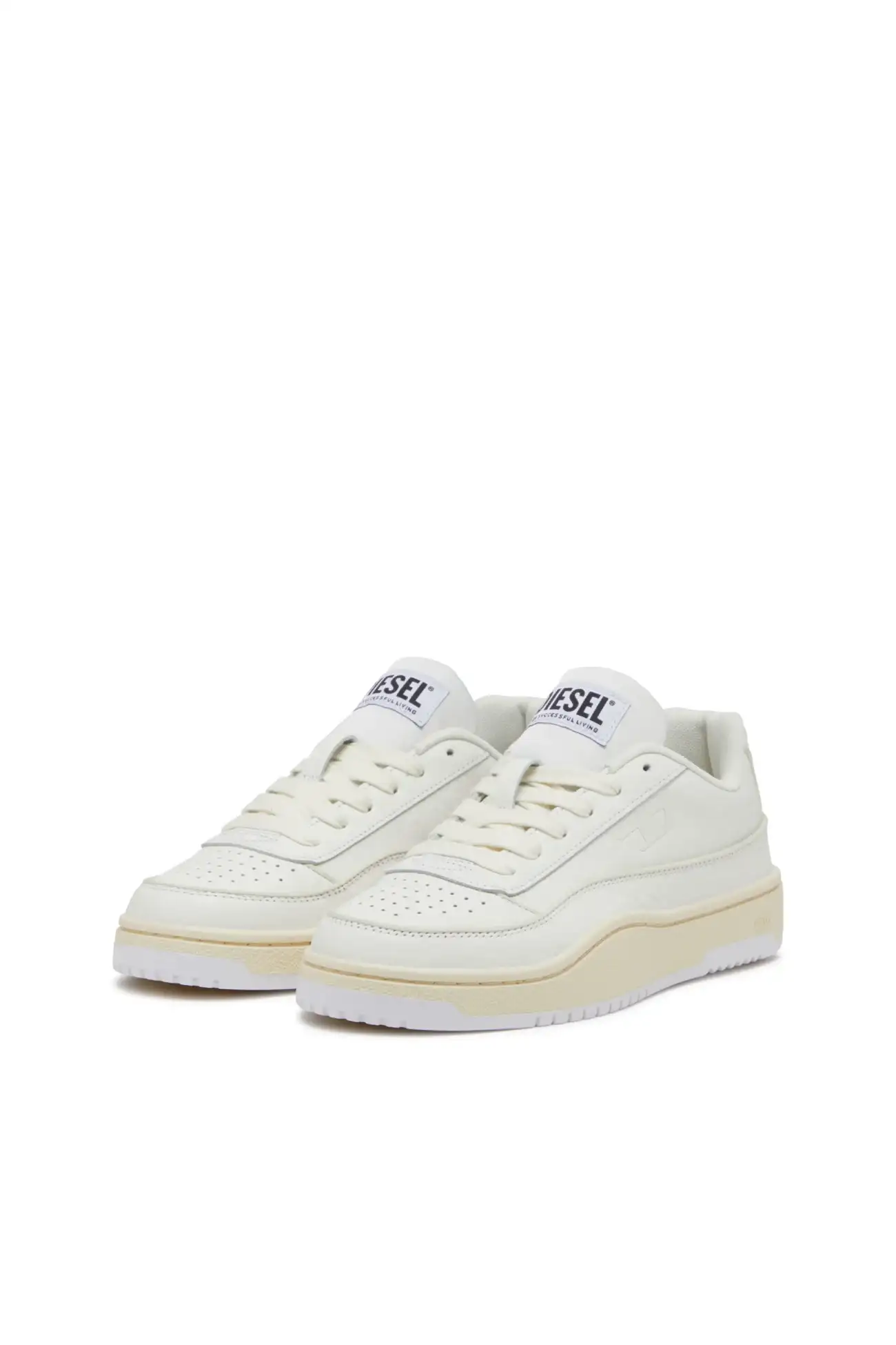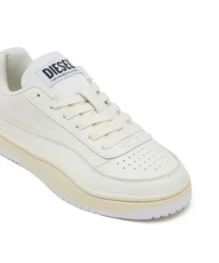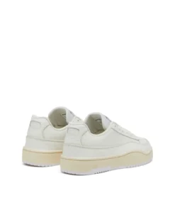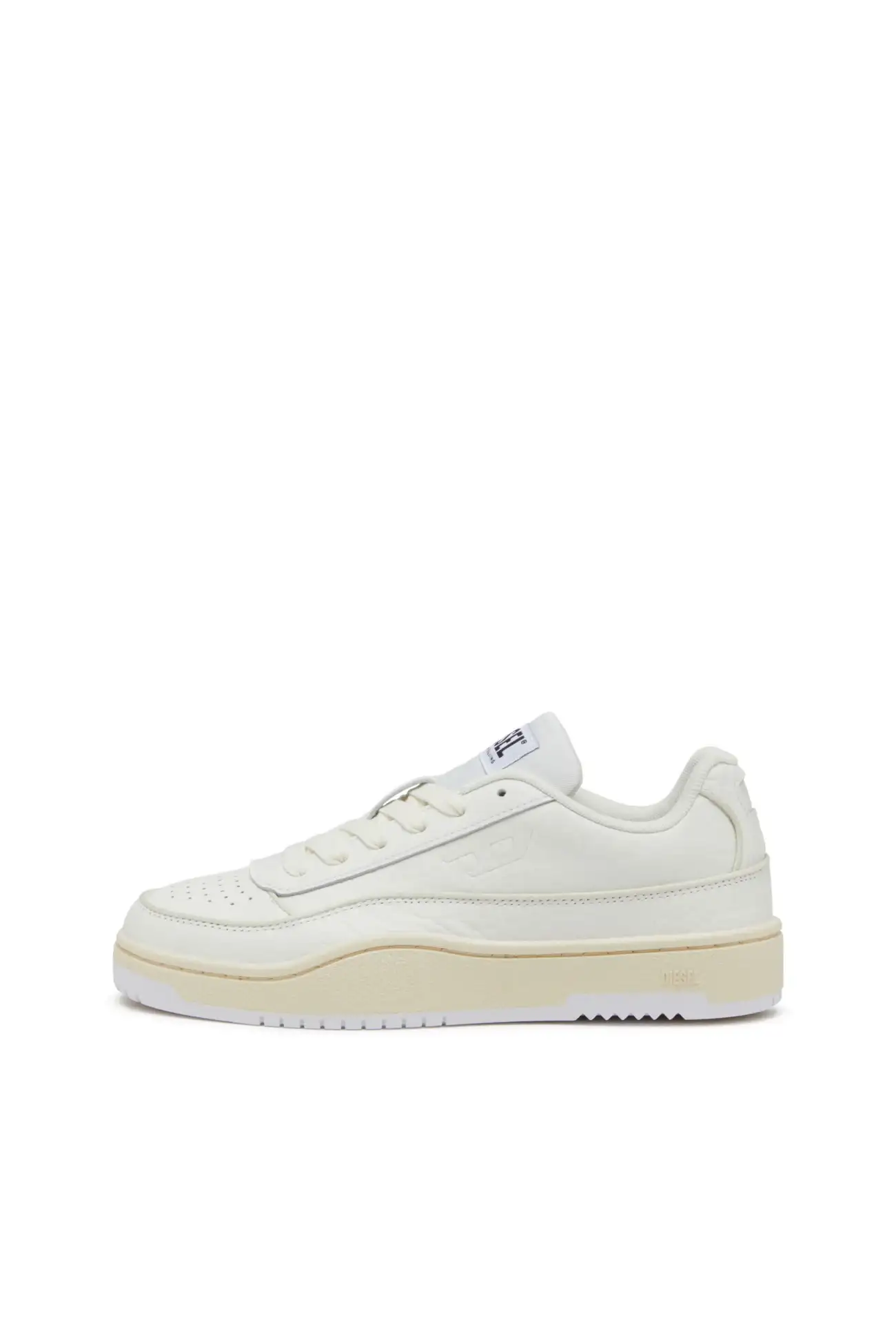 סניקרס נמוכות מעור עם טקסטורה בהשראת שנות התשעים, בצבע לבן וקרם עם סוליה עבה והטבעת לוגו D