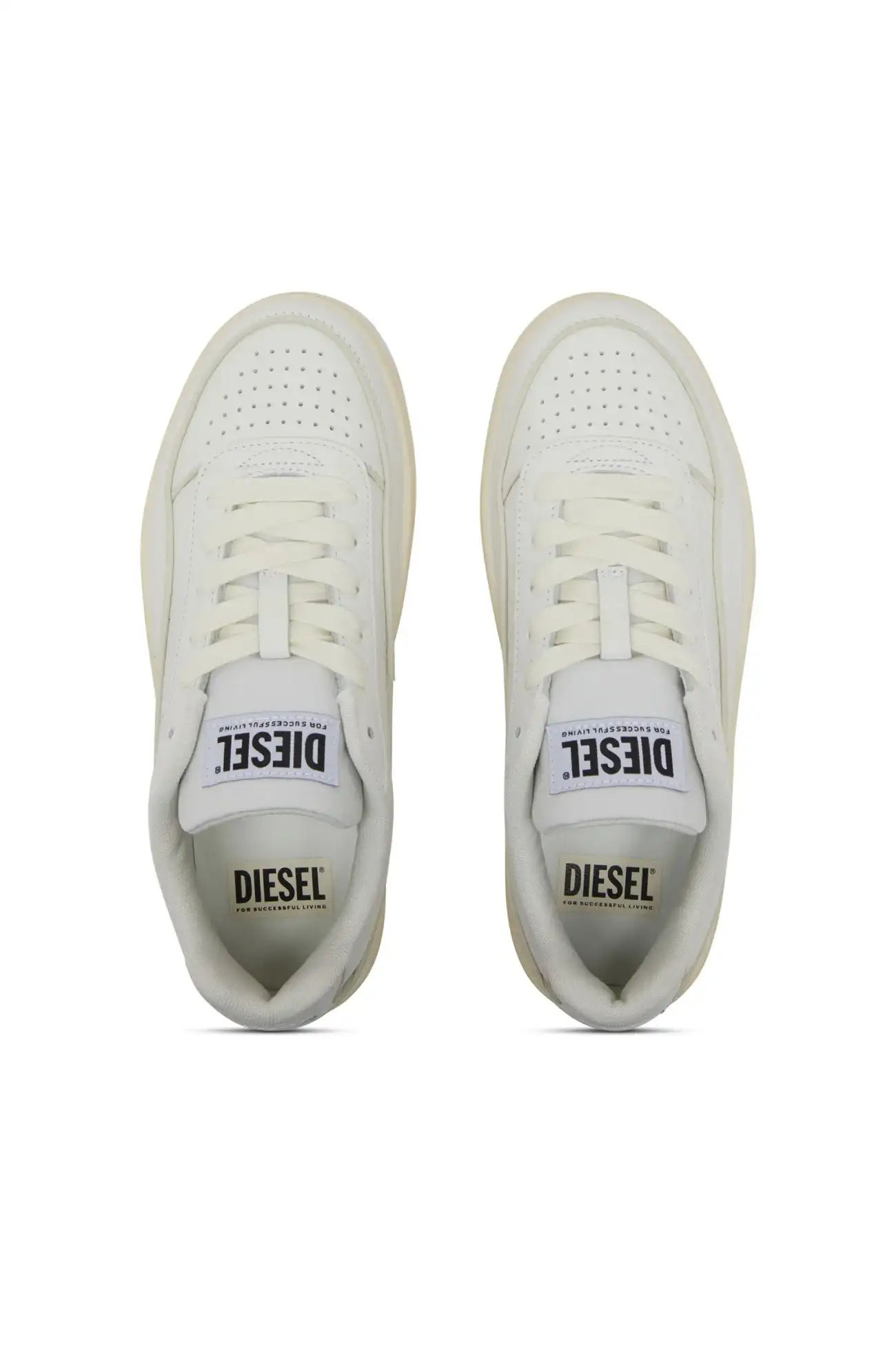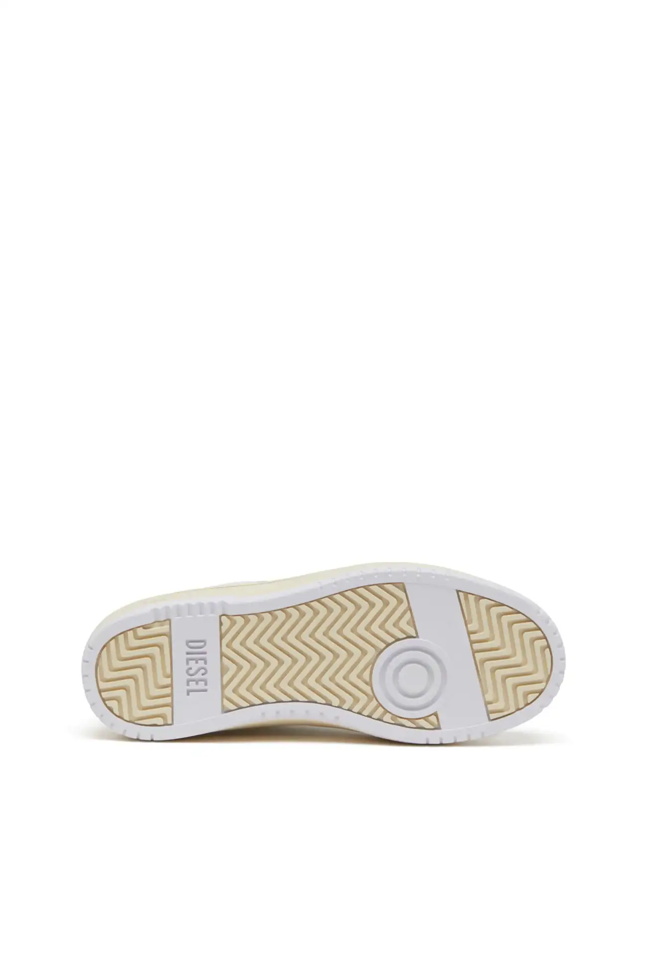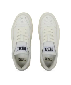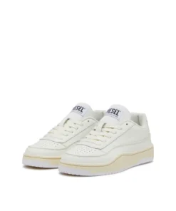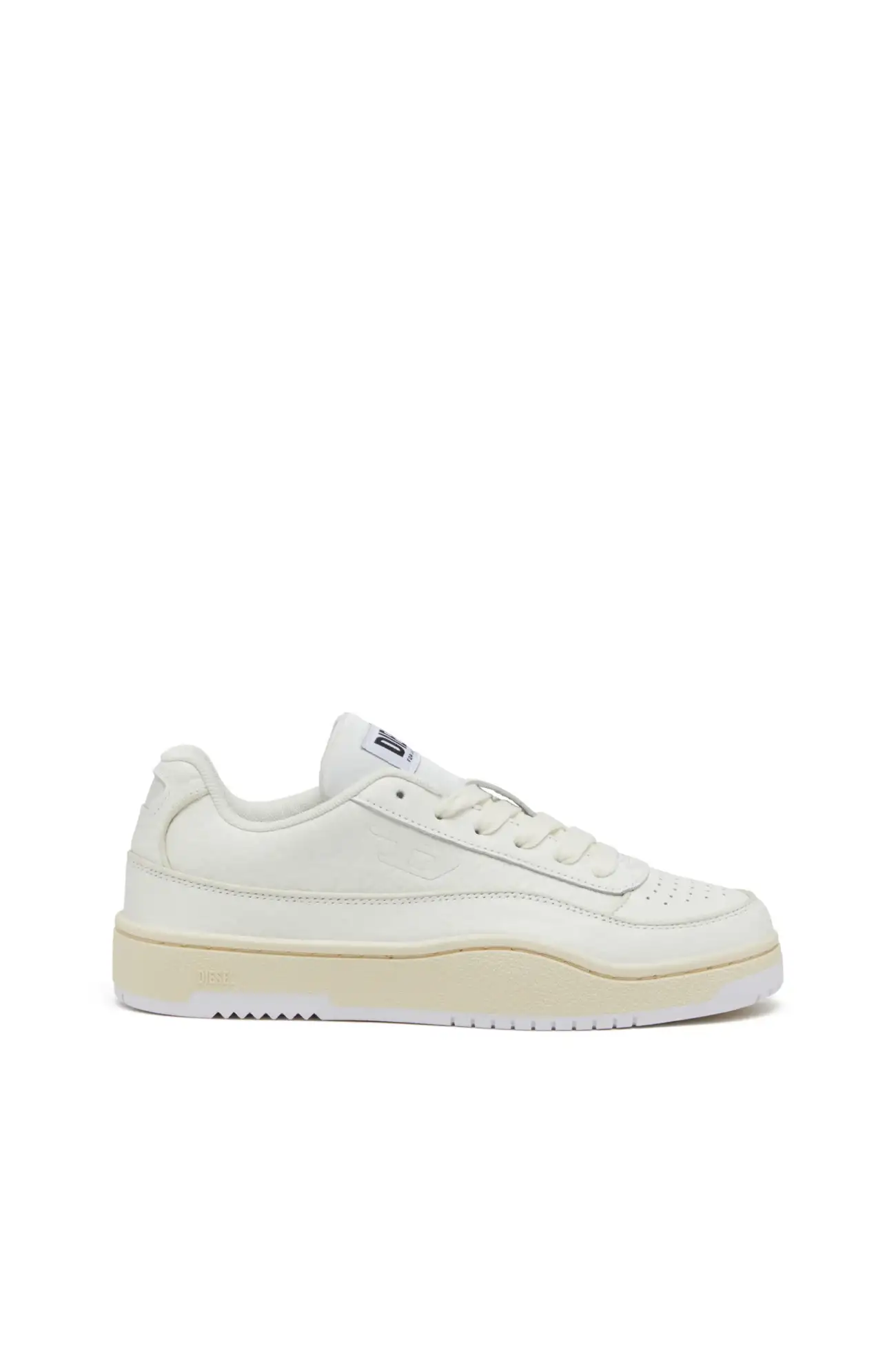 סניקרס נמוכות מעור עם טקסטורה בהשראת שנות התשעים, בצבע לבן וקרם עם סוליה עבה והטבעת לוגו D