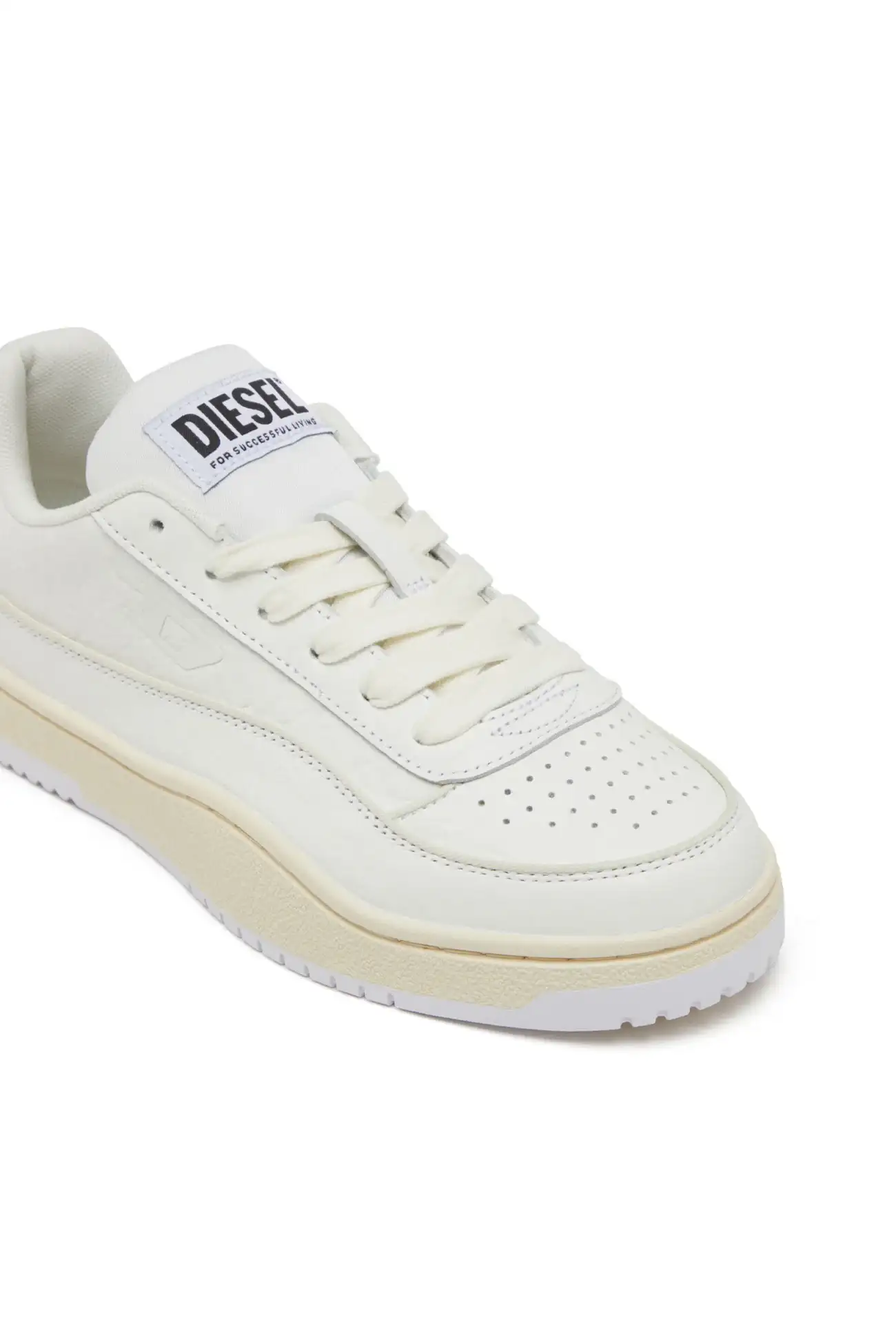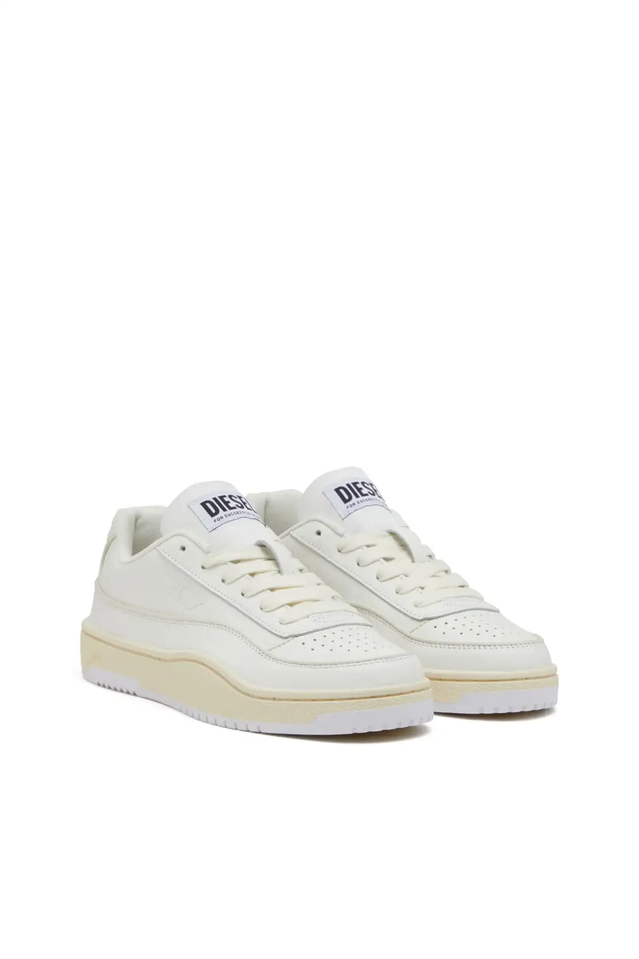 Women's lace-up trainers inspired by ‘90s court styles. Made from panels of grainy textured leather, these low-tops feature perforated toe boxes, iconic D logos and retro-style off-white soles with contrasting treads.
