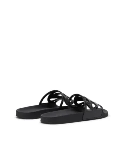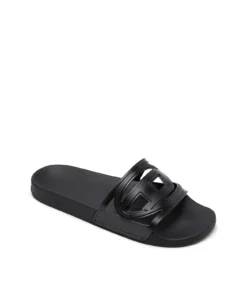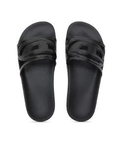 כפכפי סלייד בצבע שחור בעיצוב מודרני עם רצועה רחבה המעוצבת בדוגמת לוגו אובאל D חתוך. הדגם עשוי מחומר קל וגמיש ליצירת תחושת נוחות יומיומית, עם מבנה מינימליסטי וקווים חלקים המדגישים את האסתטיקה הגרפית של הלוגו. הסוליה הרחבה והשטוחה מעניקה יציבות ונוחות, בעוד הגוון השחור מדגיש את האופי הגרפי והנקי של הפריט