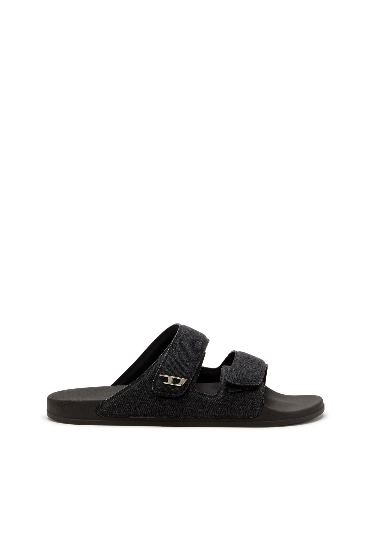Designed for all genders, these unisex slide sandals are made from a combination of robust TPR rubber and denim. The signature fabric covers the upper made up of two self-fastening straps that ensure an easy, adjustable fit. The metal D rivet adds a touch of Diesel identity.