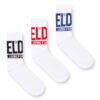 שלושה זוגות גרבי כותנה אורגנית בצבעי כחול, ורוד ובורדו עם סוליות מרופדות והדפס לוגו מסביב לקרסול בצבע שחור