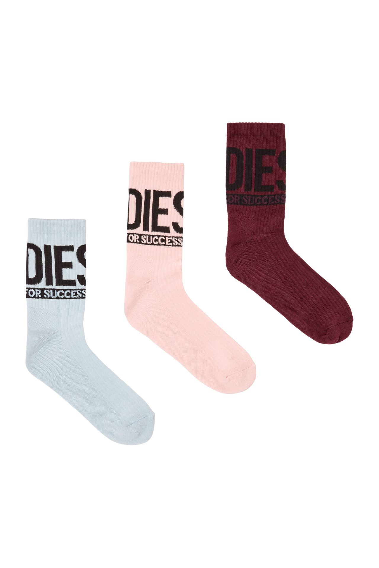 Three-pack of men's crew socks crafted from a blend rich in organic cotton. Each pair has thick, cushioned terry soles and ribbed cuffs jacquard-knitted with the Diesel For Successful Living logo.
