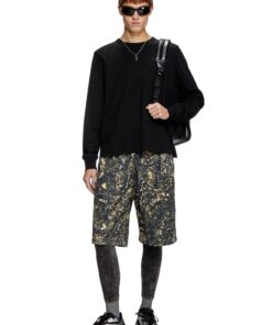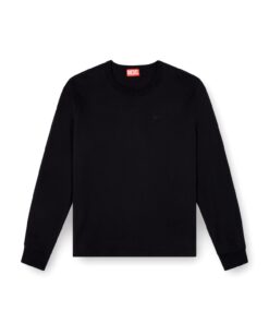 חולצת טי ארוכה בצבע שחור, עם פתחים קטנים בסיומת צדי הגוף ורקמת לוגו שחורה