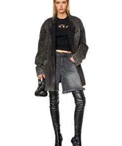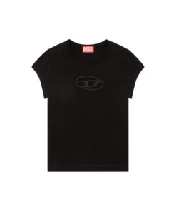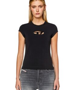 חולצת טי קצרה שחורה בגזרת סלים עם מחשוף קאט-אאוט של לוגו D אליפטי