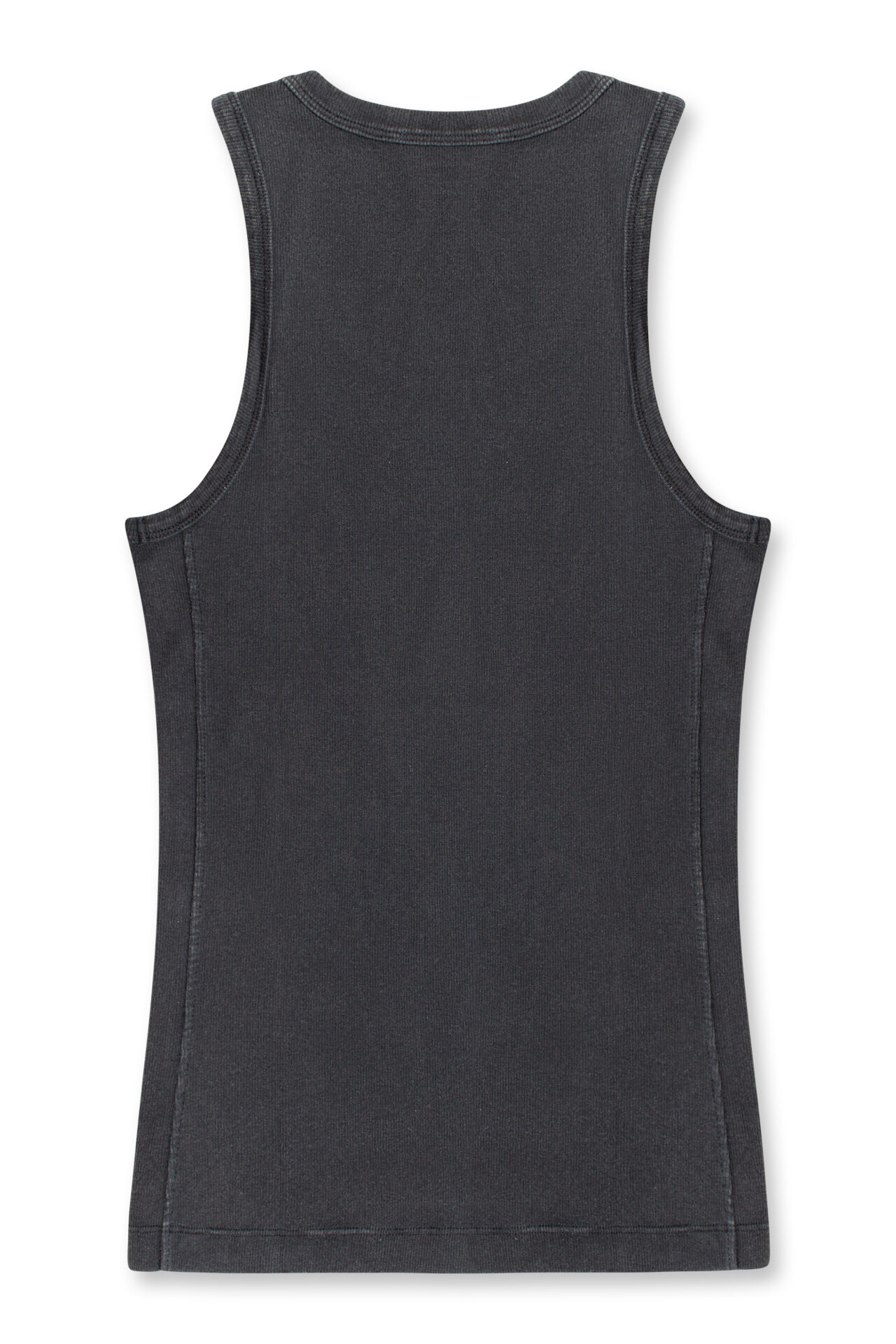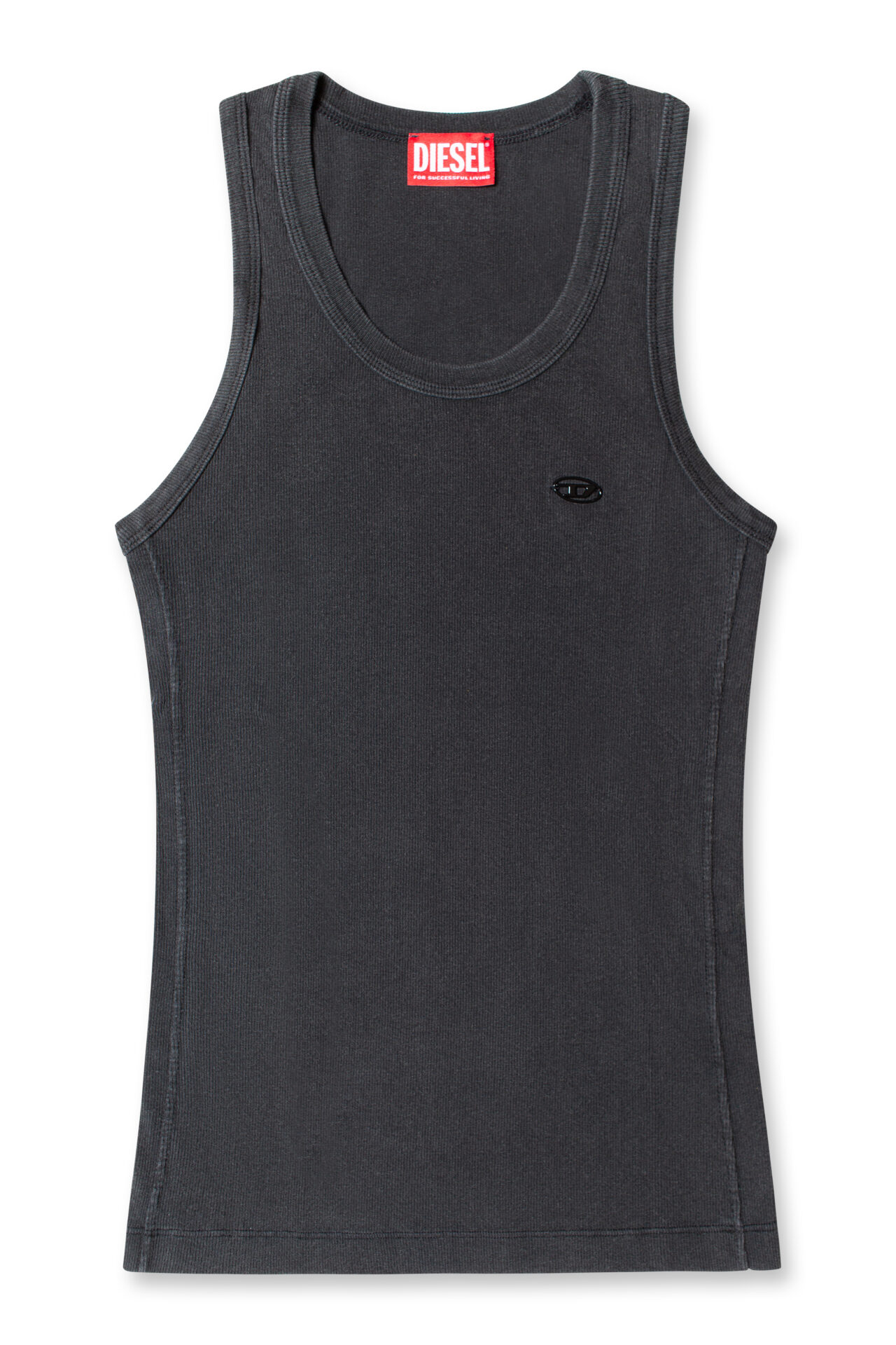 גופייה מכותנת ריב בצבע אפור כהה, עם לוחית לוגו D קטנה בצד החזה