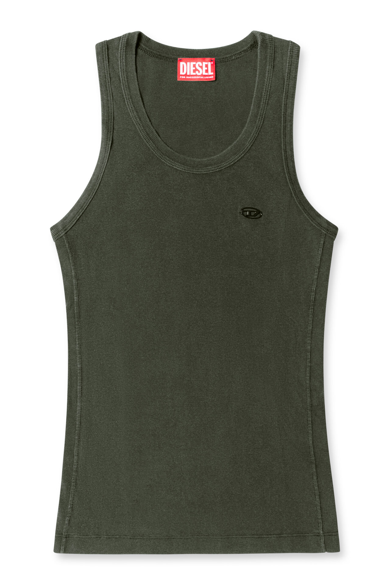 גופייה מכותנת ריב בצבע ירוק זית, עם לוחית לוגו D קטנה בצד החזה