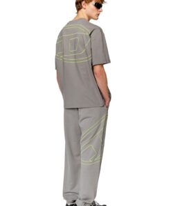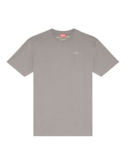 חולצת טי קצרה אפורה עם רקמת לוגו D ענק על הגב