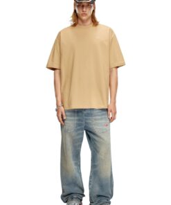 חולצת טי קצרה בצבע חום בהיר עם רקמת לוגו D ענק על הגב