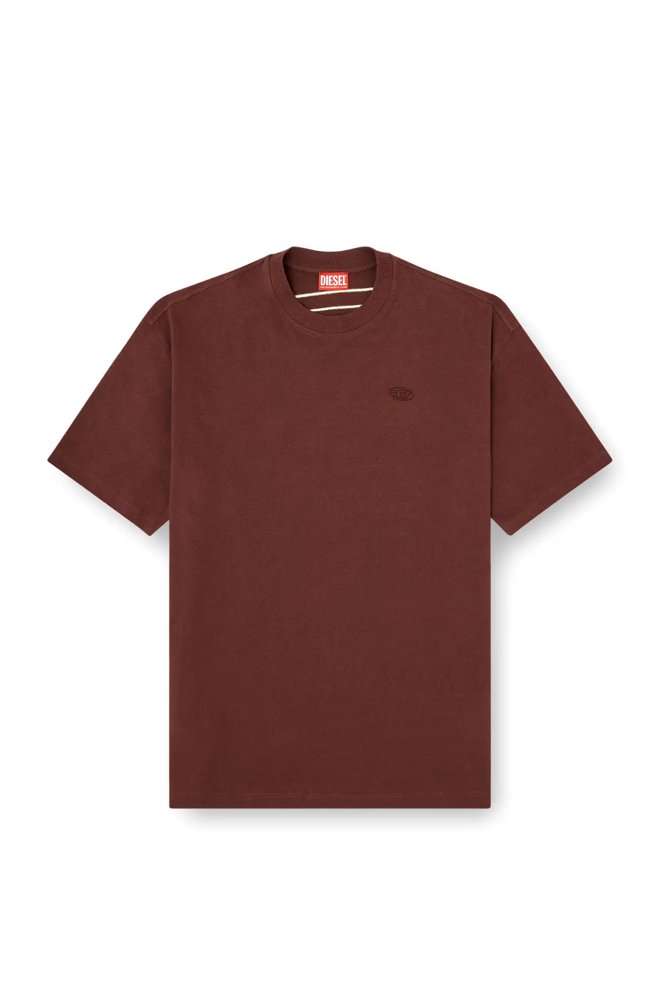 חולצת טי קצרה בצבע חום עם רקמת לוגו D ענק על הגב