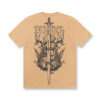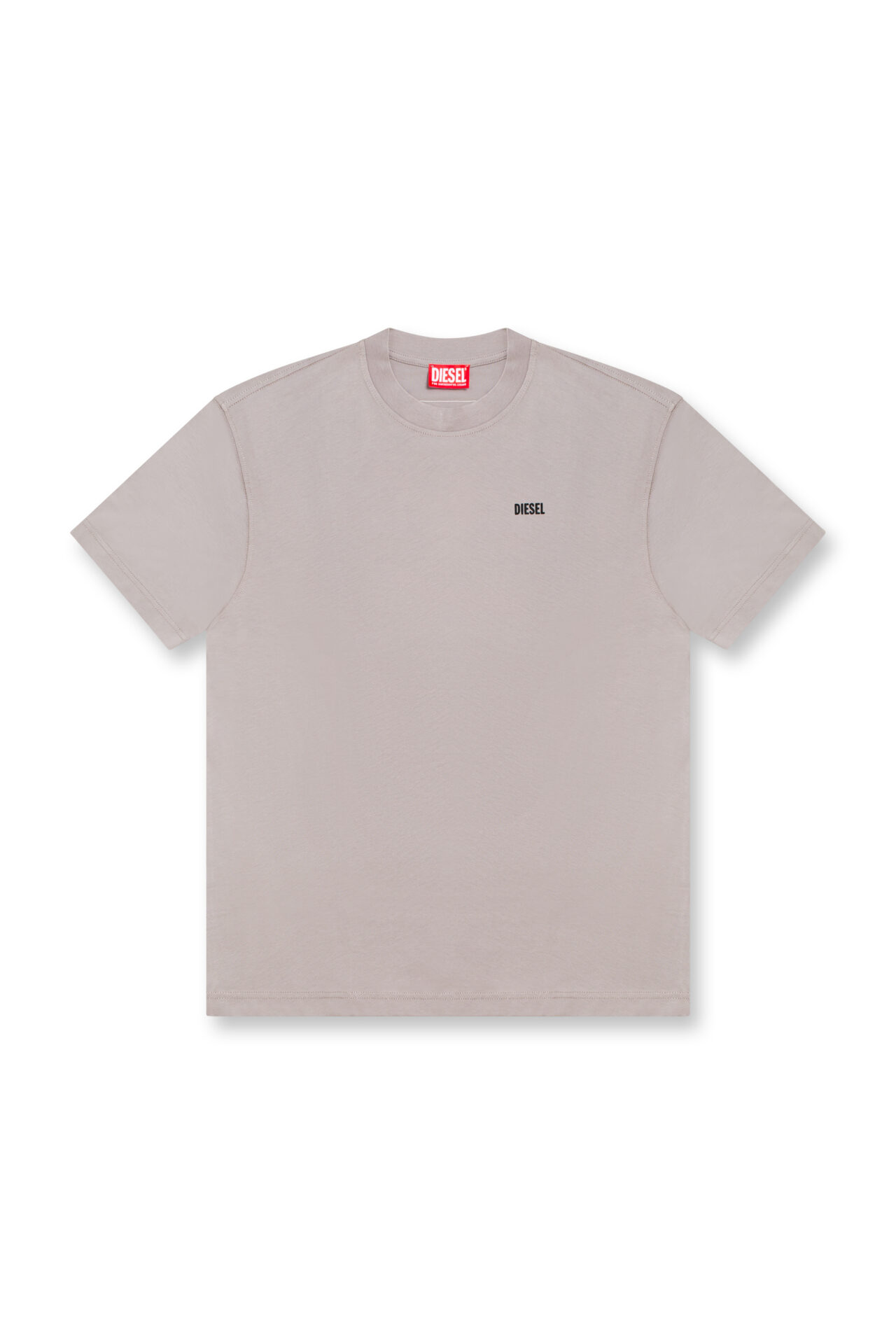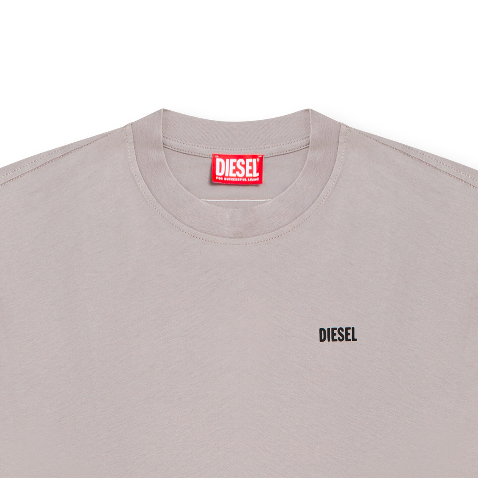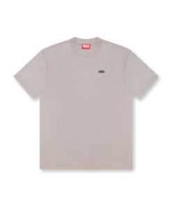 חולצת טי קצרה בצבע אפור בהיר עם הדפס תמונה על הגב והדפס לוגו קטן בצד החזה
