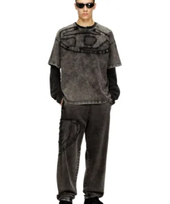 Relaxed fit T-shirt with crew neck and half sleeves, crafted from cotton jersey that's garment dyed and acid washed for a lived-in, textured effect. A maxi Oval D application on the chest and a small Oval D embroidery on the sleeve add a distinctive Diesel touch.