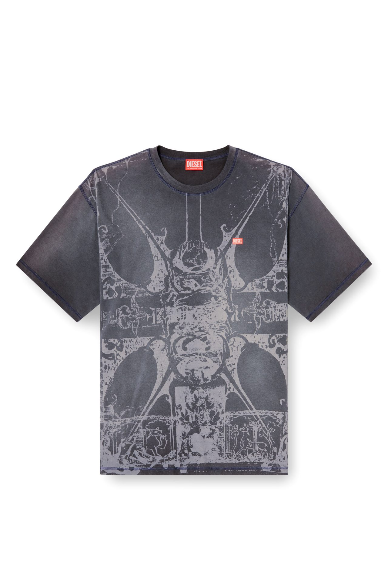 This men's organic cotton relaxed tee is part of a creative collaboration with an artist, tastefully detailed with a tonal design that takes inspiration from medieval artwork. Dyed from the inside for a subtly worn-in look with visible stitching, it features a Diesel label transfer on the chest.