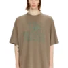 טישרט שרוול קצר מכותנה עבה עם הדפס קמו – בז'/חום