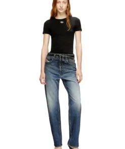 Slim fit T-shirt with a crew neck and short sleeves. Made of a finely-ribbed cotton and elastane blend, it ensures comfort and a snug fit. The injection-printed metallic Oval D logo just below the neck adds a distinctive touch. The top has undergone fabric dyeing and garment washing for a soft, lived-in texture.