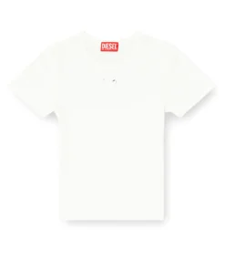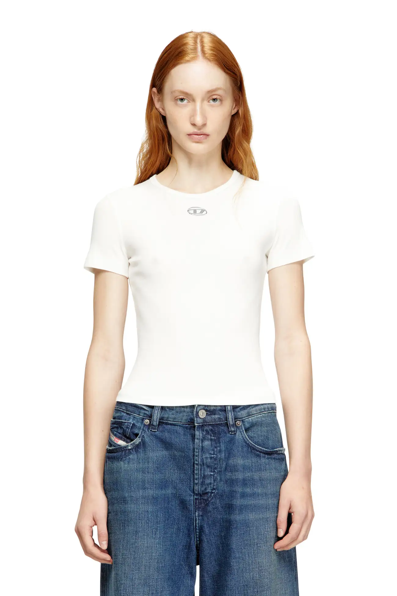 טישרט ריב צמודה עם Oval D מטאלי – לבן