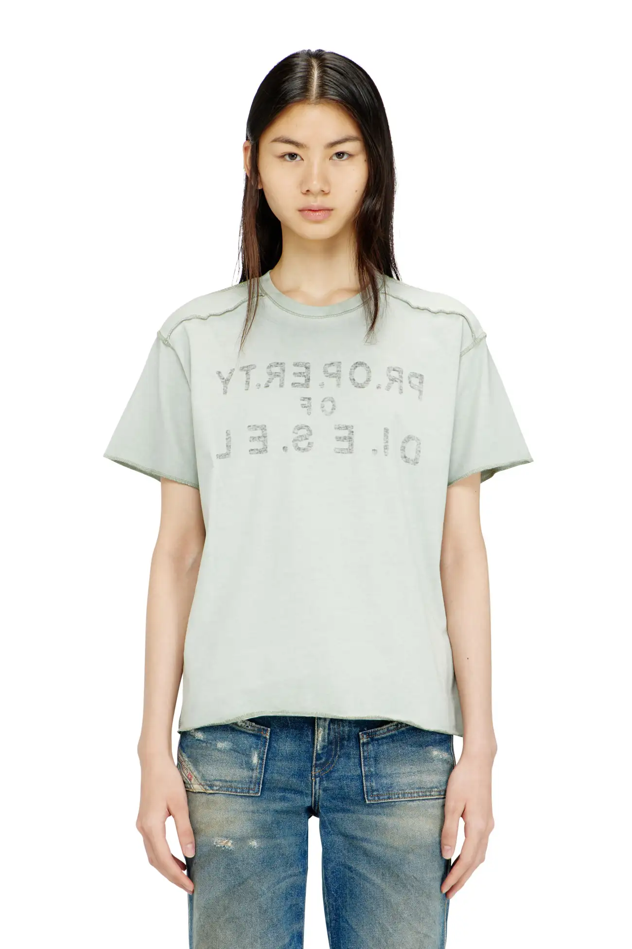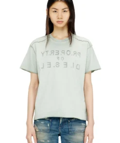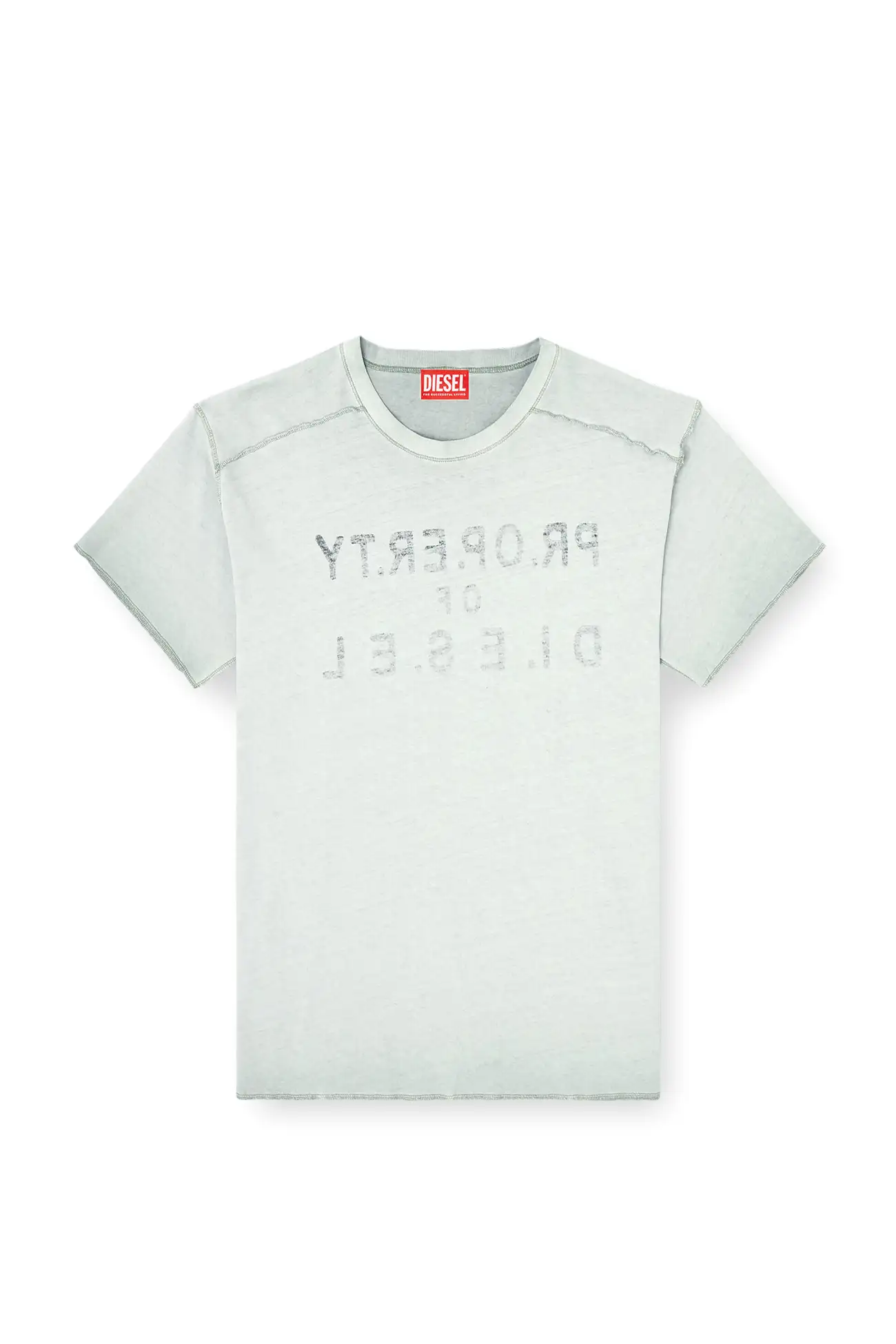 Regular-fit T-shirt with a crew neck and short sleeves, crafted from organic cotton jersey and treated inside-out with a cold pigment dye. Cover stitching and overlock seams in contrasting color enhance the construction. Printed on the front and back with logo lettering, enriched with a D application on the front.