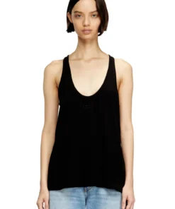Part of the exclusive Fall Winter 2025 Runway Show collection, this women's scoop-neck tank top in organic cotton jersey flares fluidly over the body. Rib-knitted with a hint of stretch, it's embroidered with an Oval D logo in tonal yarn on the chest.