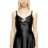 Slim fit halter top with a ruched front neckline, closed with an elegant chain necklace embellished with the Oval D logo. Made from stretch fabric, it enhances the silhouette. The unique workmanship creates a luminous effect.