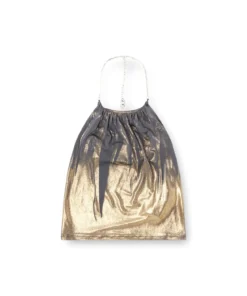 גופיית קולר מבד ג׳רזי אפור בגימור מטאלי, נסגרת עם שרשרת שיוצרת כיווצים במחשוף
