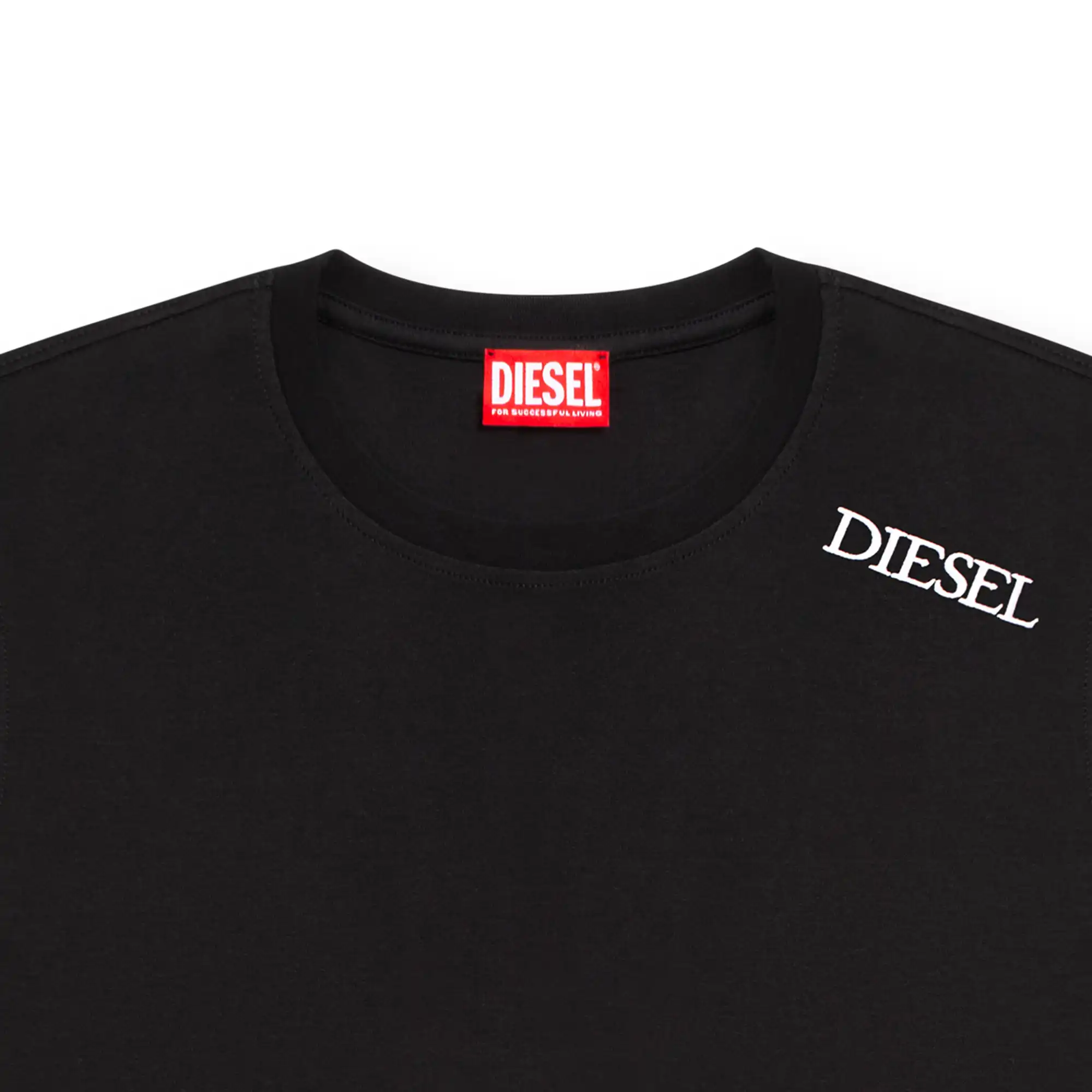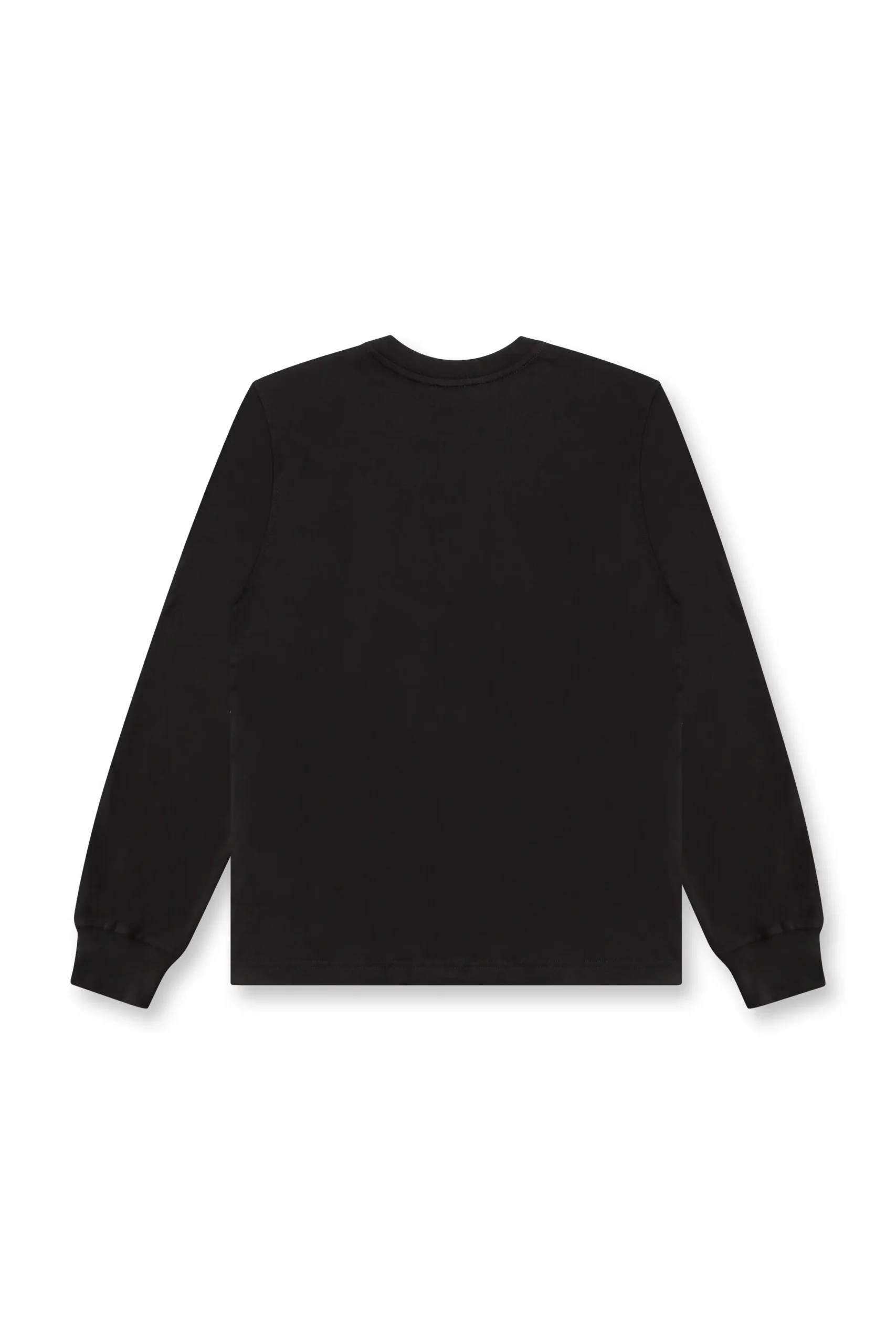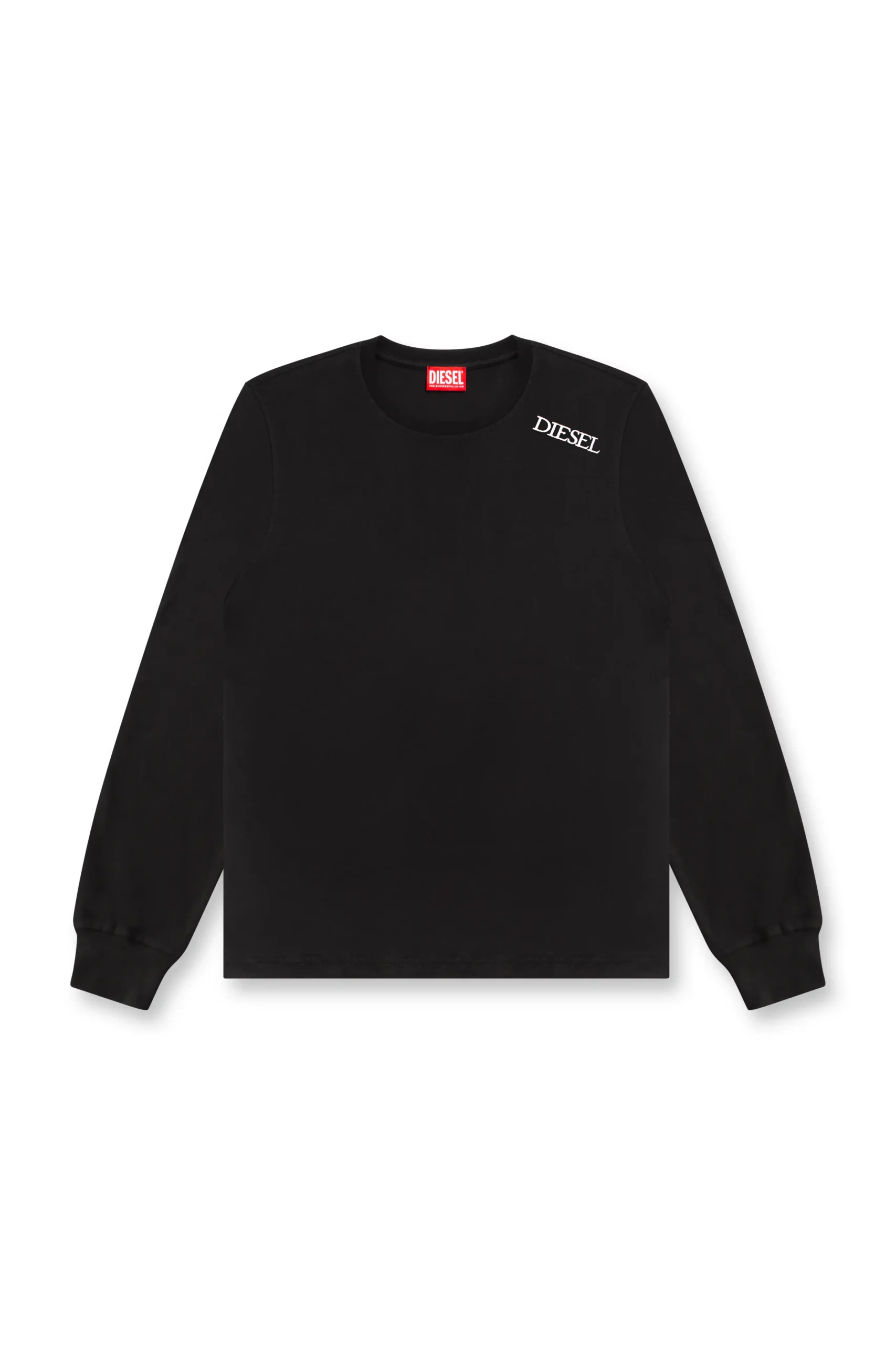 חולצת טי ארוכה בצבע שחור עם לוגו לבן מודפס באלכסון בצד הצווארון