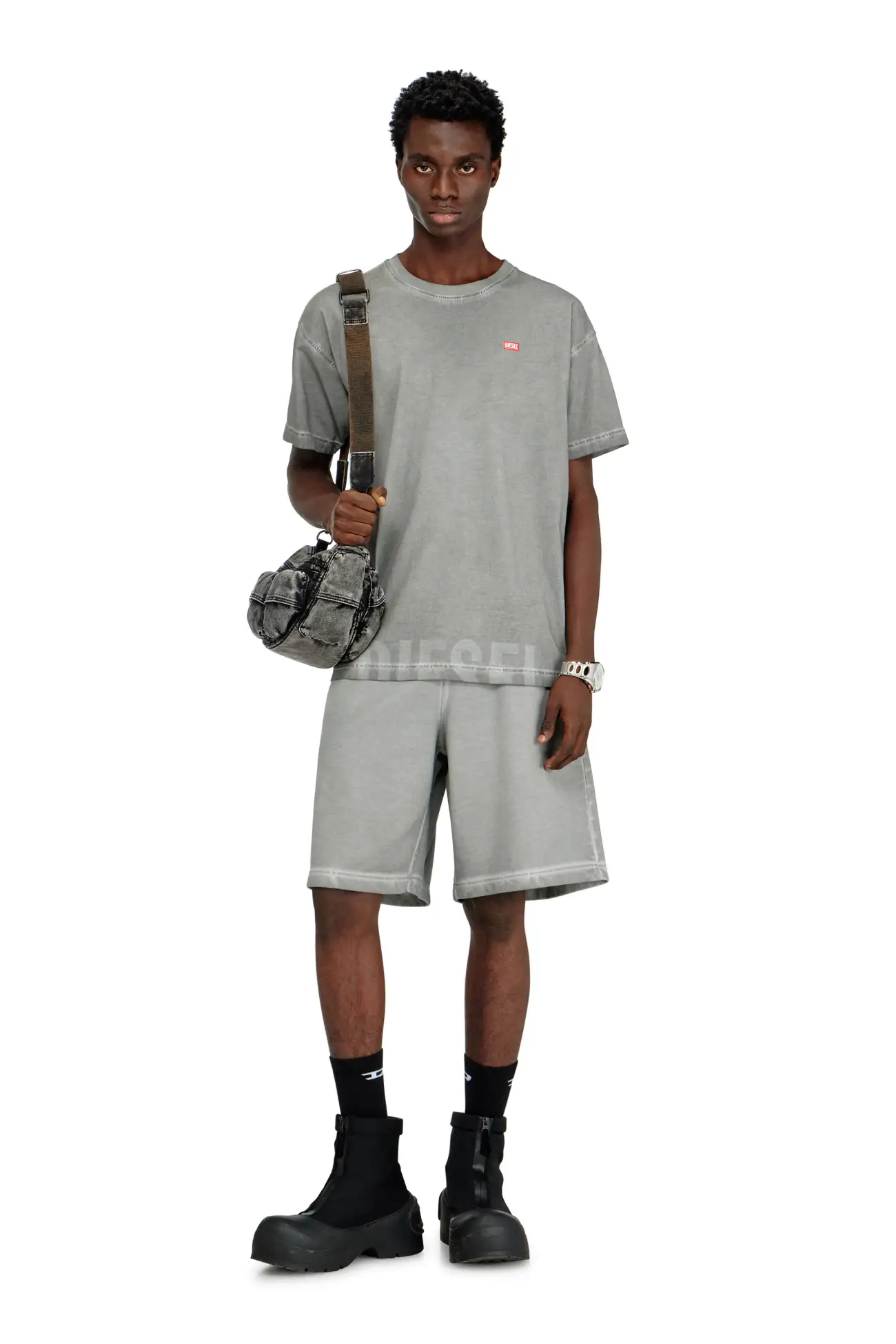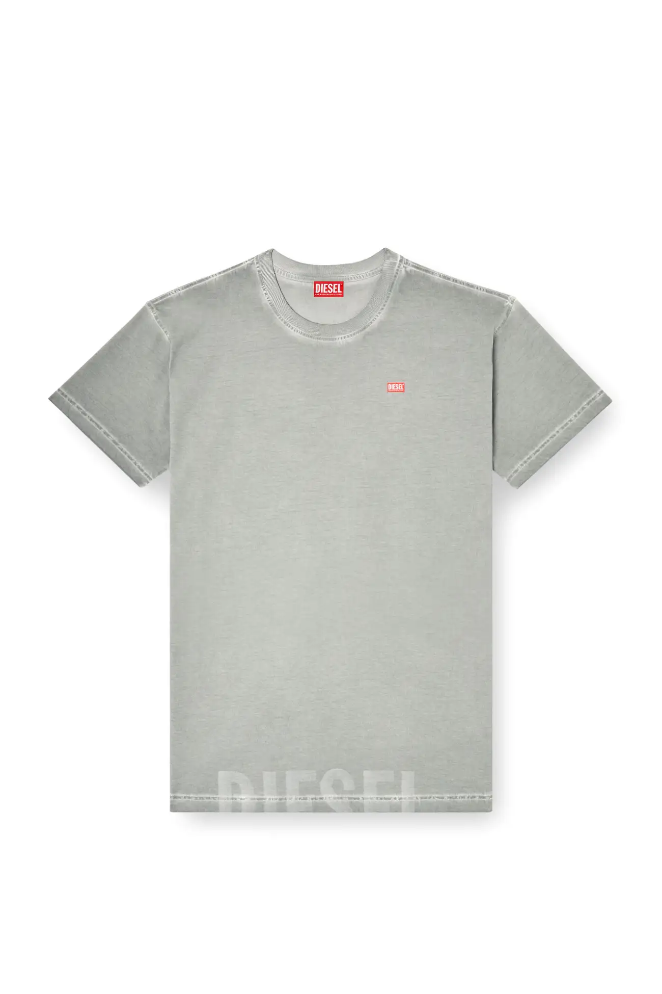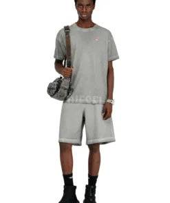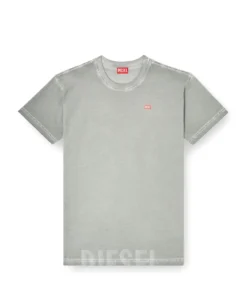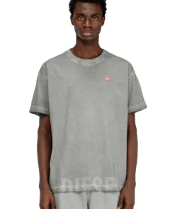 טישרט שרוול קצר בגזרה רגילה עם צווארון עגול, עשויה כותנה עם הדפס לייזר בחזית התחתונה ולוגו דיזל באזור החזה בצבע אפור