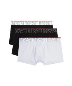 שלושה זוגות תחתוני בוקסר בצבע שחור ולבן עם לוגו על הגומי ופס אדום