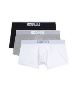 Three-pack of plain boxer briefs crafted from stretch cotton. Each pair features an elasticated waistband, detailed with a contrast stripe and front Diesel Denim Division logo.